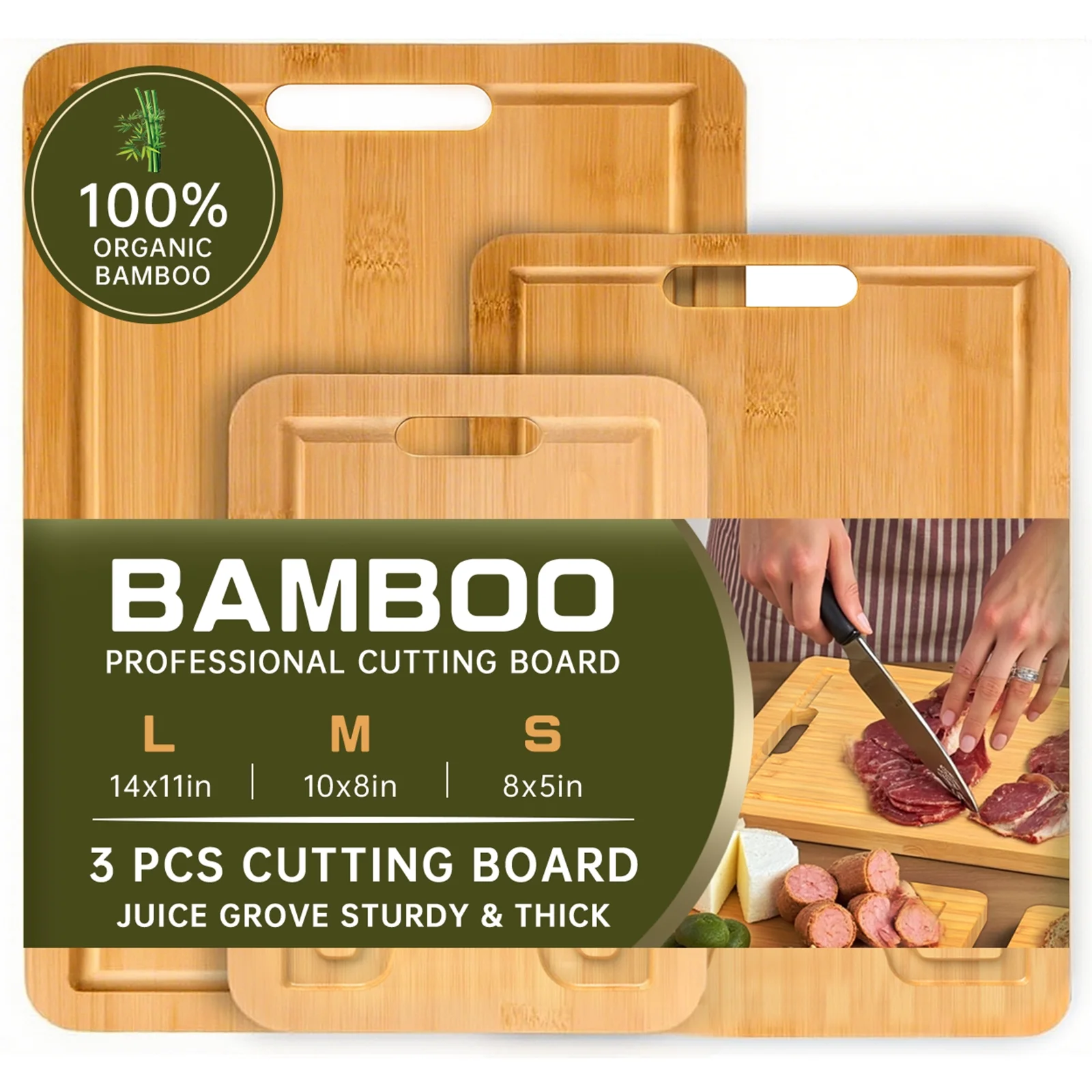 Cutting Boards for Kitchen - Bamboo Wood Cutting Board Set - Cutting Board with Juice Groove and Handles, Charcuterie & Chopping Butcher Block for Meatgift